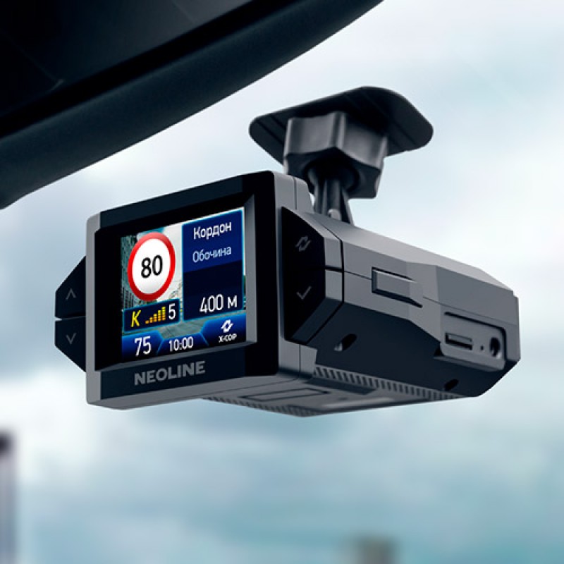 Neoline X-COP 9300c – гибрид с увеличенным рупором для детектирования современных маломощных радаров, увеличенной GPS антенной для точного геопозиционирования, направленным к водителю дисплеем, разрешением записи FULL HD и отличным соотношением цены и качества.